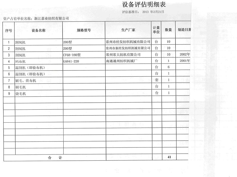 3、浙江嘉業紡織有限公司所擁有的割絨機等機器設備41臺,起拍價70萬元。