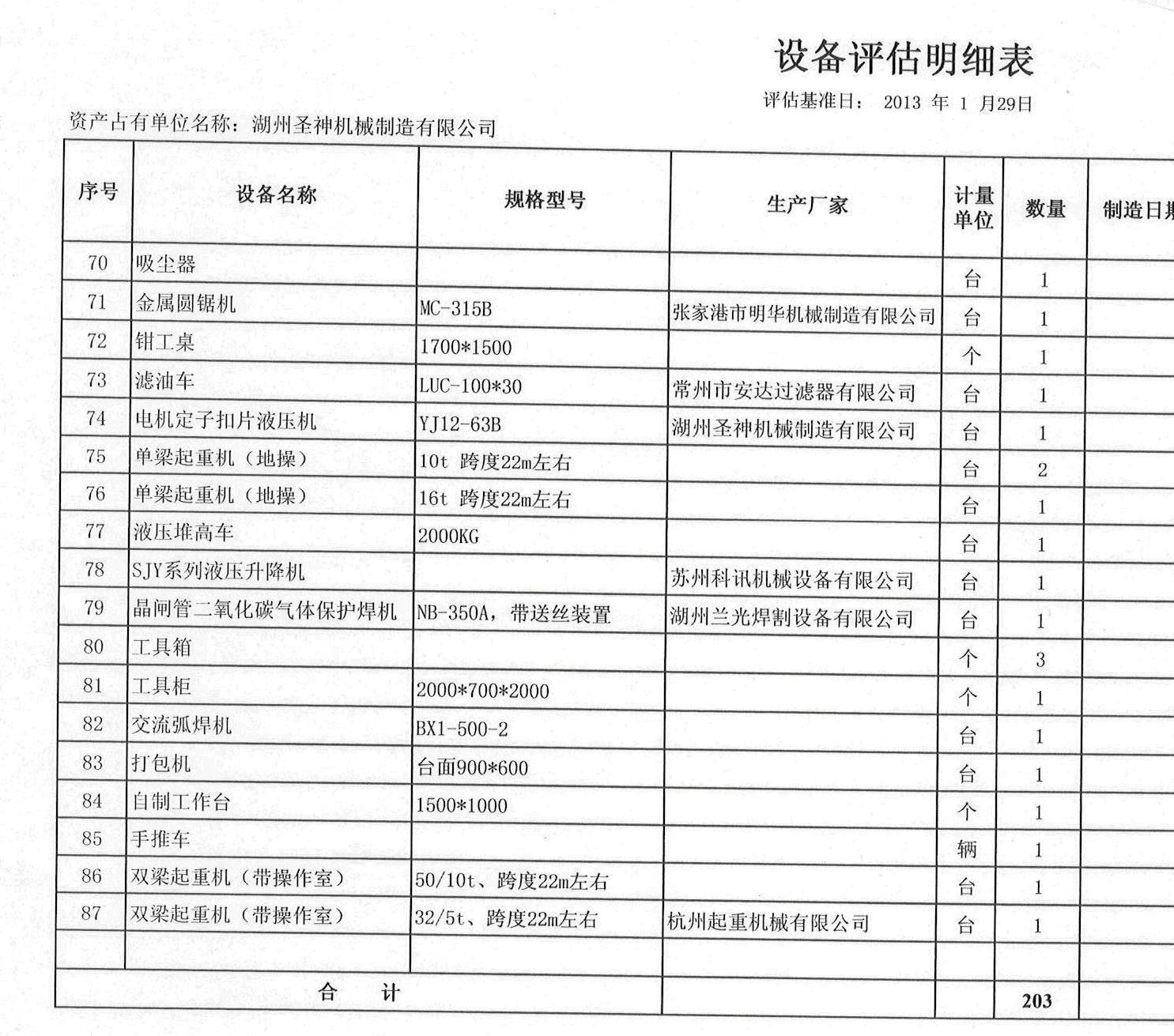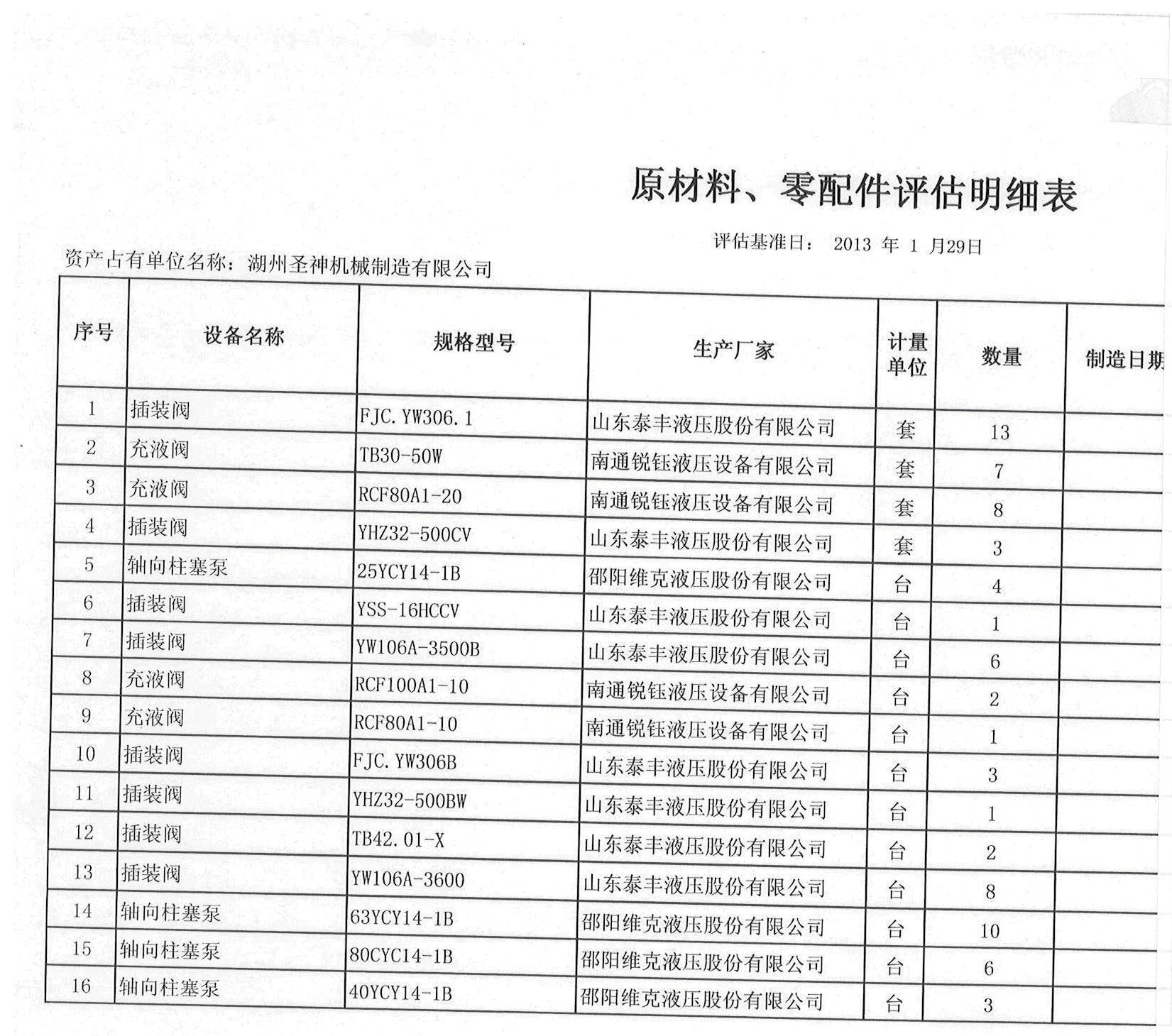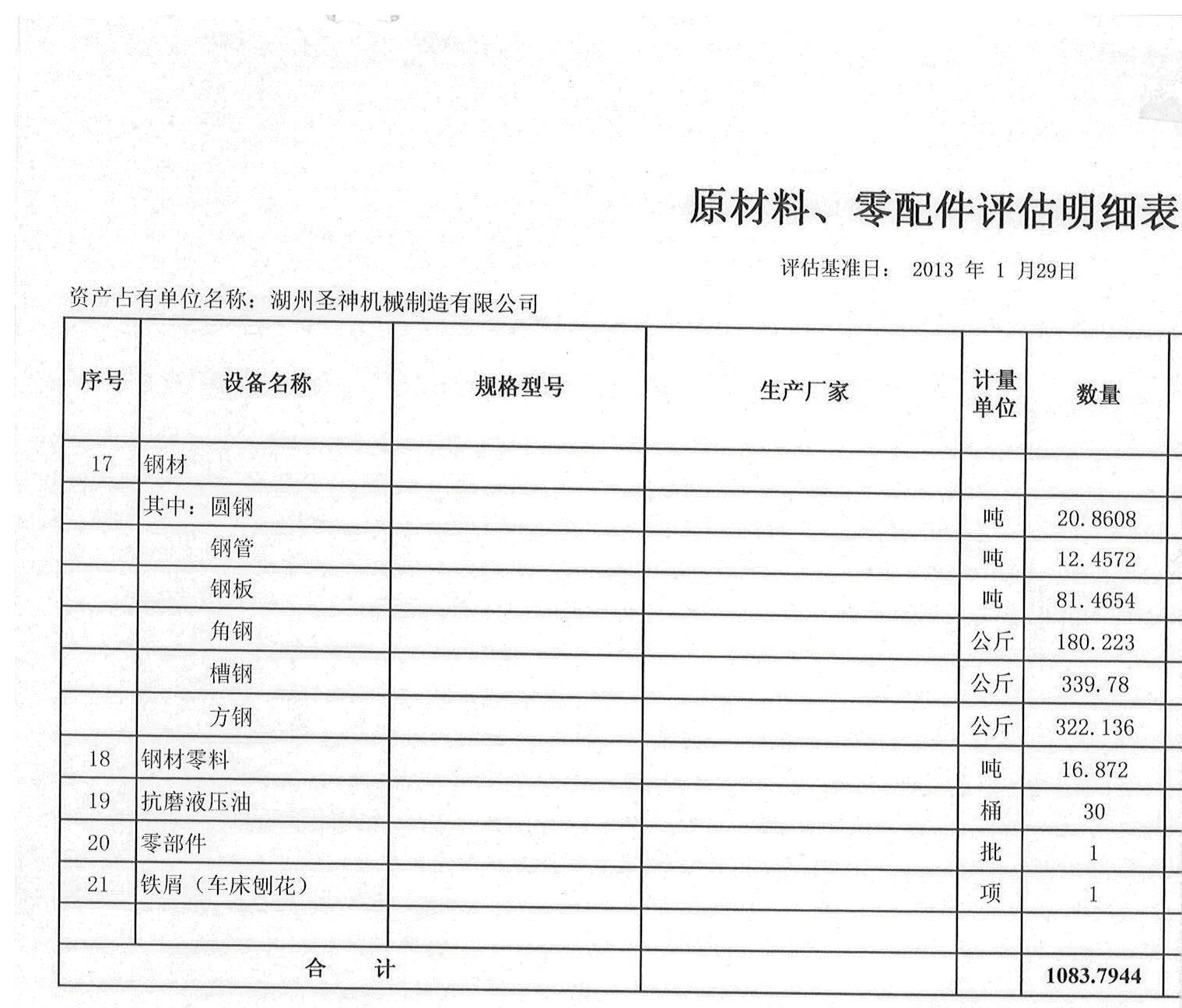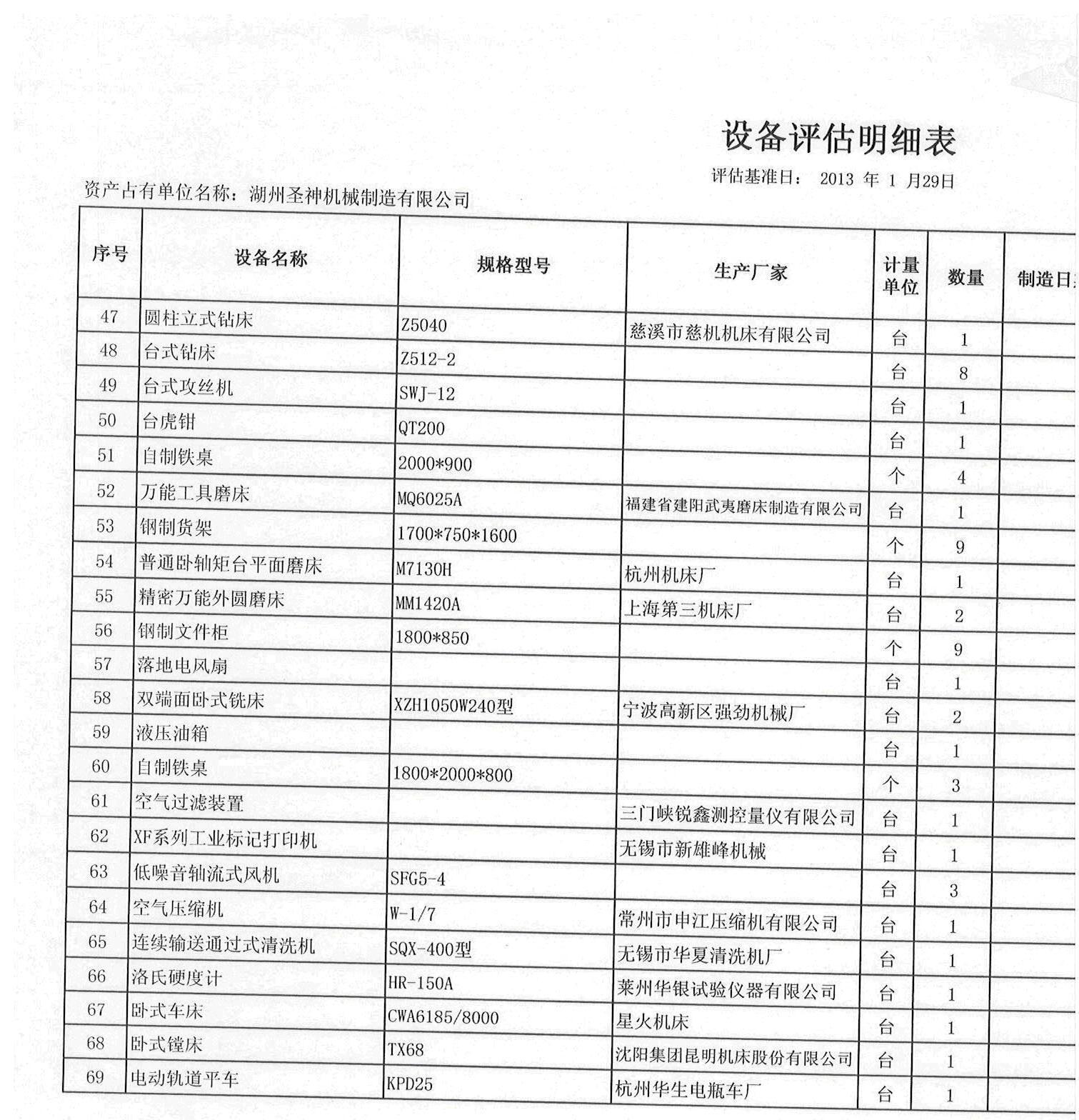 特別聲明:以下表格根據(jù)《湖州湖州圣神機械制造有限公司資產(chǎn)項目評估報告》提供,表內(nèi)所列設(shè)備名稱、規(guī)格型號、質(zhì)量、數(shù)量、重量等僅供參考。如有誤差不影響本次拍賣成交價,本公司不承擔(dān)擔(dān)保責(zé)任,一切以現(xiàn)狀為準(zhǔn)。