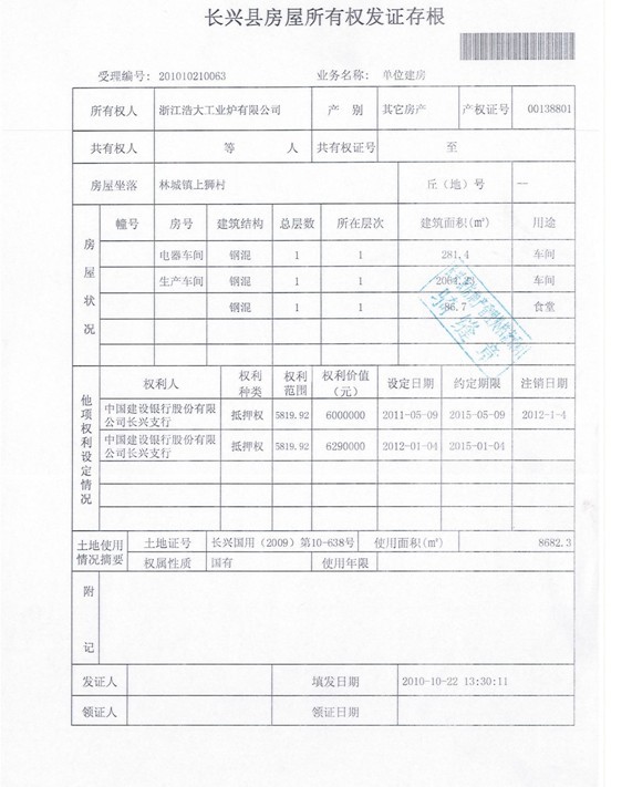 1、長(zhǎng)興縣林城鎮(zhèn)上獅村房產(chǎn)[建筑面積5819.92㎡]和工業(yè)出讓土地[面積8682.3㎡]及其生產(chǎn)車(chē)間內(nèi)的機(jī)器設(shè)備一批,起拍價(jià):643萬(wàn)元。