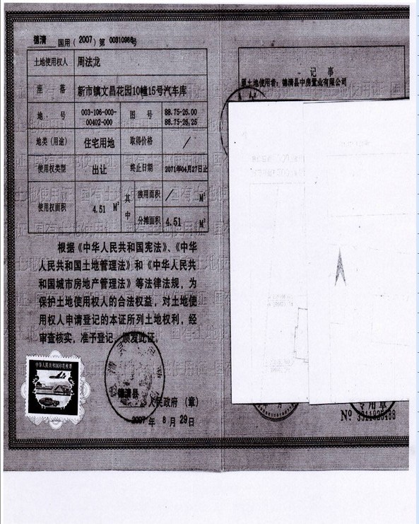 2、被執(zhí)行人周法龍所有的位于德清縣新市鎮(zhèn)文昌花園8幢2單元404室住宅一套(139.55㎡)及10幢15號汽車庫一間(25.19㎡),含固定裝修、儲藏室(7.99㎡),起拍價69.6萬元;