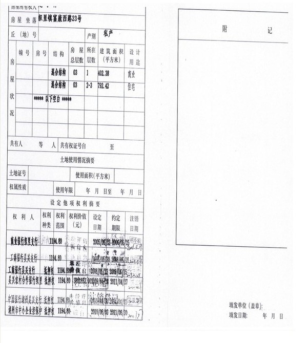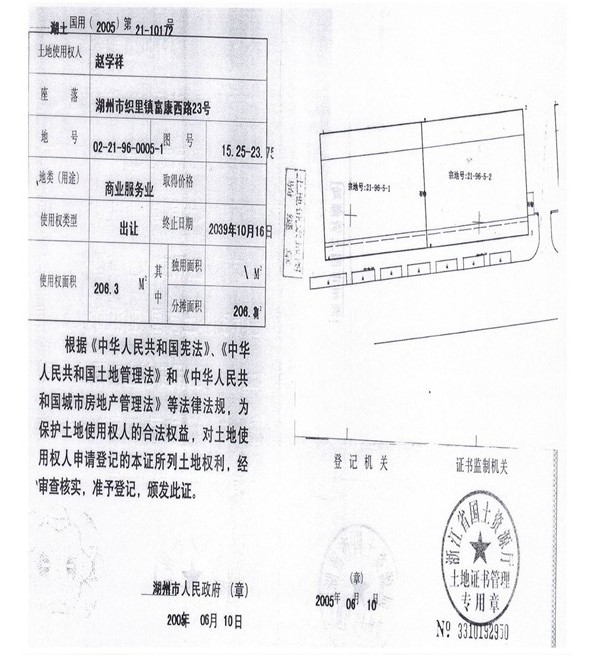2、湖州市織里鎮富康西路23號房產(商業402.38㎡,住宅792.42㎡、自建無證330.6㎡),起拍價995萬元。(被執行人趙學祥、蔣善勤有競買權)