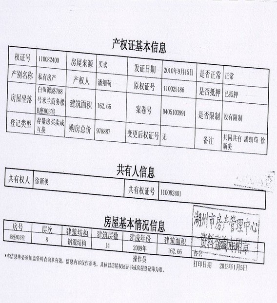 一、標的:湖州市白魚潭路788號米蘭商務樓B座801室、802室、803室房產(含室內裝修),建筑面積:451.88㎡,起拍價218萬元,有保留價。(被執行人徐新美、潘細茍有競買權)